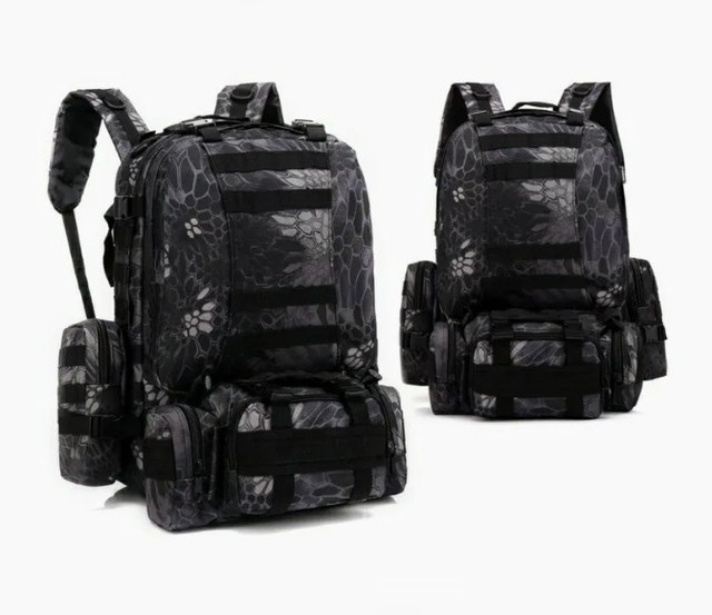 Рюкзак має регульовані кріплення по системі MOLLE, що дозволяє додавати до сумки додаткові кишені та модулі. Додатково оснащений нагрудним і ременем на стегнах - дозволяє розвантажити хребет і плечі при тривалих поїздках. Регульовані лямки особливо зручні при перенесенні таких речей, як куртки, намети, килимки. Ремінь на стегнах має міцну пряжку і регулювання довжини. Після пристібання ременя рюкзак дуже стійкий, при носінні не нахиляється вбік.