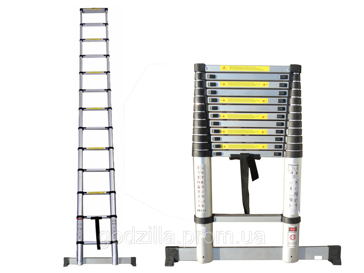 Драбина телескопічна 3.8 м + стабілізатор. Зроблена з високоякісного алюмінію. Забезпечує зручну і безпечну експлуатацію та використання драбини у багатьох роботах монтажу та оздоблення. Можливість регулювання висоти сходів.