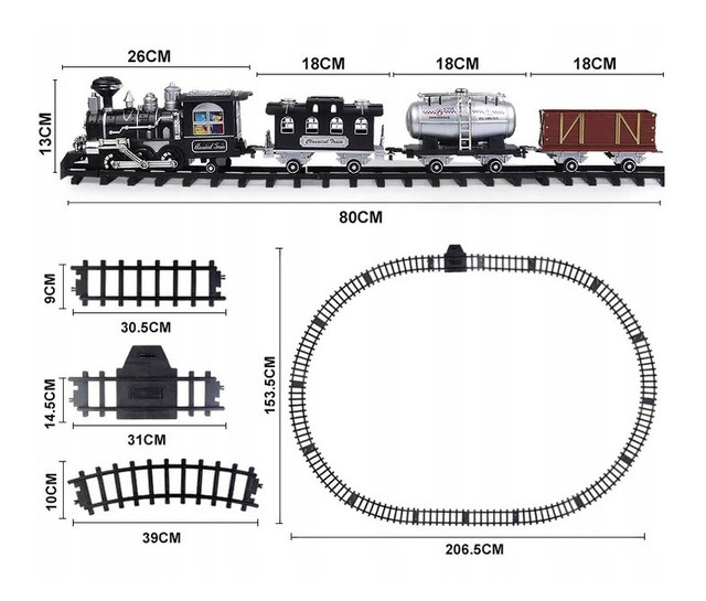 Щоб відправити паровозик у дорогу, просто вставте в нього 6 батарейок типу АА (не входять в комплект) і 2 батарейки АА для пульта дистанційного керування (не входять в комплект).